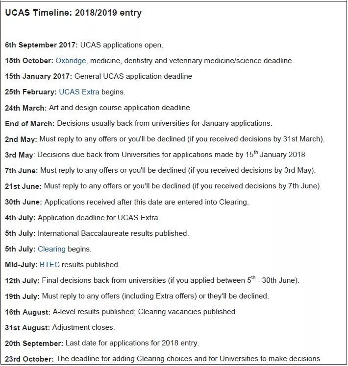 更多细节,详见官网:https://www.ucas.com/undergraduate/after-you-apply/types-offer/extra-choices 补录 Clearing ◎ 补录的开放时段是7月5日—10月23日左右。